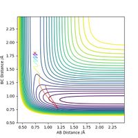 This is illustrated with the plot below. The contour map shows the position of the TS with a cross.