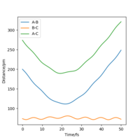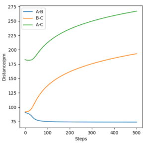 Conditions: rAB = 75 pm, rBC = 180 pm, pAB = 20 g.mol-1.pm.fs-1, pBC = 10 g.mol-1.pm.fs-1.