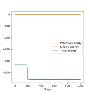 -2.56 | -5.1 | -414.280 KJ.mol-1 | Yes | Plot shows trajectory going from reactant, going over the minimum energy path via the transition state and finally to form the product What about changes in vibration?. Pu12 (talk) 21:06, 11 June 2020 (BST)