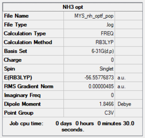 •ΔE = 2*E(NH3) - [E(N2 )+ 3*E(H2)] = -0.36427156 a.u
