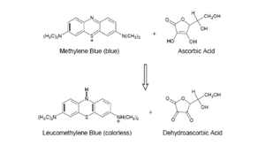 You will study the reduction of methylene blue (MB+) by ascorbic acid (A) to its colourless form leucomethylene blue. More specifically you will investigate the dependence of the rate law on the ascorbic concentration acid.