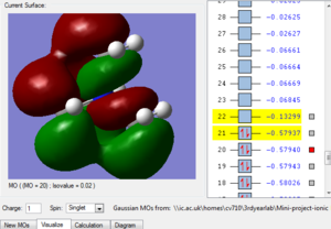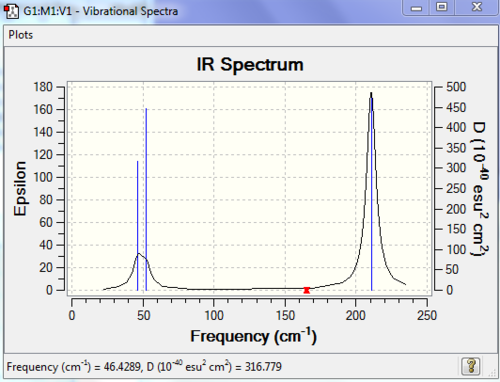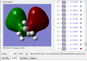 Molecular orbital and natural bond orbital analysis will be studied as well as vibrational and frequency analysis to determine, for example, whether or not a transition state is present. Gaussview also allows us to view the infrared spectra of our molecules and see the different vibration modes.