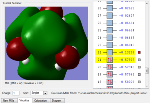 After analysing many different molecules, raging form small relatively simple ones to more complex ones, both in the first and second part of this module, it is clear that there are many properties which can be thoroughly studied using computational methods. The relative ease with which we can confirm if a calculation was successful, and therefore if the results obtained are valid, is what distinguishes computational labs from the typical experimental labs. Here we know when something has gone wrong and are able to correct it. Overall, the methods and basis sets used to carry out the different calculations were successful. This allowed for the structure and bonding of these molecules to be further explored.