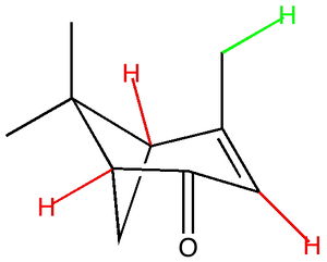 Caryophyllene ketoneCaryophyllene, a constituent of many essential oils, include clove oil, has atrans alkene contained in a 9-membered ring. One interesting property is that it has 4 diastereoisomers possible, originating from a total of three asymmetric centres present in the molecule. Two of these are conventional chiral centres, one is present in the form of a disymmetric trans double bond. To understand why such a bond can result in two configurations, one must appreciate that (concurrent) rotation about the two C-C single bonds adjacent to the alkene is in fact restricted, because to the hydrogen labelled Ha cannot easily pass by the edge of the 4-membered ring. Construct this molecule (in fact the ketone rather than the alkene) and optimize its geometry. Note in particular that the ring junction is trans and not cis.