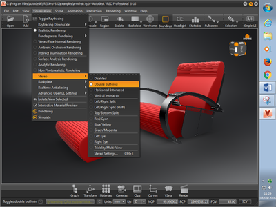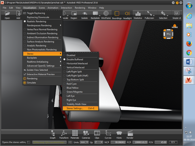 To enable stereo visualisation, click on Visualisation > Stereo > Double Buffered