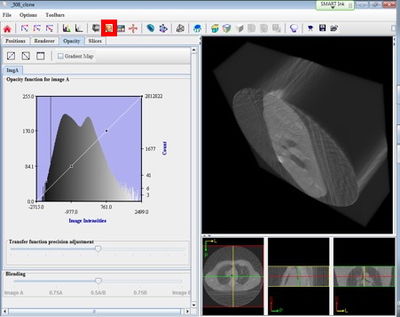 You will now be able to rotate the 3D image with the mouse and adjust opacity to show/hide different parts of the image (note the additional Opacity and Slices tabs).