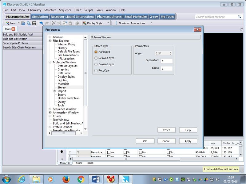 • Hardware Stereo Type is selected in the Molecule Window section of the program preferences as shown below (Click Edit and then Preferences):