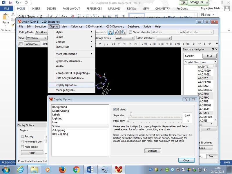An overview of stereo formats can be found at https://www.sview.ru/en/help/input/ LT B10 (MSRH, Chemistry) is equipped with a stereoscopic projector configuration used with polarized glasses stored in the projection booth, which allow viewing of 3D images and video. You will need swipe-card access to enter. Check that the battery in the glasses has charge before attempting to use!