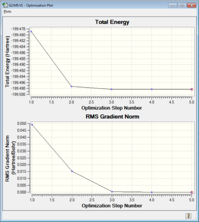 The table below is part of the output of the optimization it shows that the forces have converged. As force is the gradient or slope of the energy vs distance graph, and the minimum is where the slope is zero. A system is in equilibrium when there are no net forces acting on it, when the net forces are zero. Therefore when the net force or slope is zero the calculation is finished. The computer never gets to exactly zero because of rounding errors, so aa threshold is applied. The table shows the calculation has finished properly.