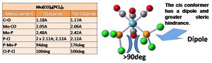 This is in accord with the literature, which confirms that the cis Mo-P bond length is longer than the trans (2.5000a.u., slightly higher than the calculated).[8]