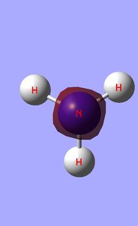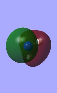 The specific NBO charges for nitrogen, carbon and hydrogen were then analsyed. Nitrogen has a negative charge of -0.476 [due to its high electronegativity], the carbons hold a charge in the range of +0.071 and -0.241. The associated hydrogens possess a charge in the range +0.483 to +0.285. This is shown in the image below.