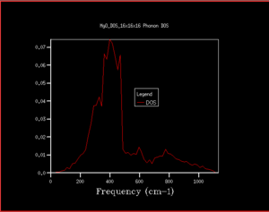 In chemistry, it is much easier to treat crystals as rigid structures with set lattice points in unit cells. This can often hold as a good approximation at very low temperatures. However, this is obviously not the case. There are many different vibrations happening throughout the lattice structure leading to thermal expansion. These vibrations can be quantified by using a wave vector - this gives the direction of the propagation of the wave in reciprocal space. To represent reciprocal space, the inverse of the lattice parameter, a, can simply be taken . This means that the x axis of dispersion plots (k) is simply multiples of a. As MgO is a cubic structure, the lattice parameter is the length of the side of a unit cell. This is calculated by taking the cube root of the volume of the conventional unit cell. This report investigates the effect of temperature on vibrations and size of the lattice structure of MgO. The lattice structure of MgO is face centred cubic.