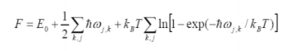 In order to look at the energy of the vibrational modes, the vibrational contribution to the entropy is used considering statistical thermodynamics and the partition coefficient. The first term of equation 4 is the internal energy, the second term is the zero point energy (energy at 0K) and the final term is the statistical thermodynamics contribution - the contribution to the energy from the different vibrations. This equation can be derived by using the partition function to derive the entropic term as shown in equation 5.