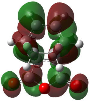 In order to explain the stability of the endo transition state, often "secondary orbital overlaps" in the transition state are invoked. The proposed orbital overlaps in the transition state are shown in Figure 46.