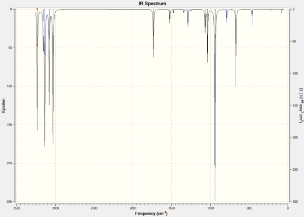The calculated frequencies were seen to be all positive and no imaginary frequencies were seen, confirming a minima had been reached. The calculated infra-red spectrum is shown in Figure 12.
