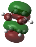 The LUMO of the transition state is comprised of contributions from the HOMO of ethylene and the LUMO of cis-butadiene and is also symmetric with respect to the plane.