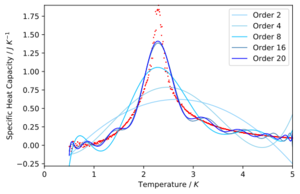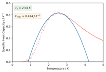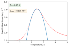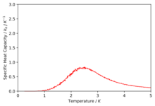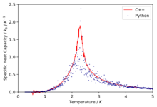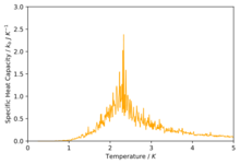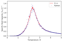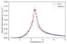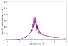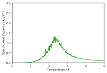 Now that we have a formula for calculating the specific heat capacity we want to plot this against temperature in order to get a visual picture of roughly where the phase transition will take place.