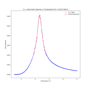 The code used for fitting a polynomial (order 30) to the heat capacity data for a 16x16 lattice is shown below.