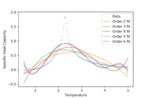 Fits polynomials for the specific heat capacity over a small temperature range near the peak: