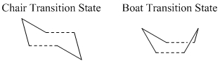 | Boat TS (HF 3-21G) | Chair TS (HF 3-21G) | Boat TS (DFT 6-31G)[1] | Chair TS (DFT 6-31G)[2] | |||||