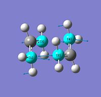 The central four carbons dihedral angles were rotated to 0 degrees and the two internal angles of these four carbons changed to 100 degrees. From this suggested geometry the QST2 optimisation was calculated. [10]