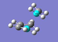 Both of these σ bonds were frozen to 2.2Angstrom and then optimised using the energy minimum optimisation (HF and same basis set).[8] Giving the resulting optimised geometry which was very similar to the transitions state calculated earlier.