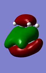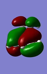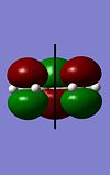 The LCAO's resemble the calculated MO's very well and it is observed that the HOMO is completely anti-symmetric with respect to the plane while the LUMO is completely symmetric with respect to the plane.