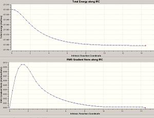The chairs IRC was calculated[15] using point 3. Interestingly with the chair conformation the energy minimum was reached giving the resulting conformation after 47 IRC points.