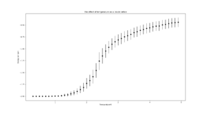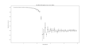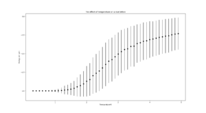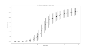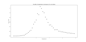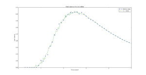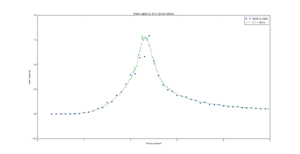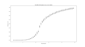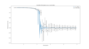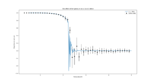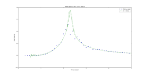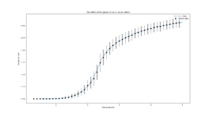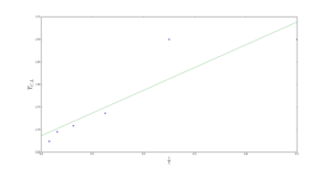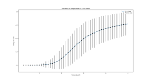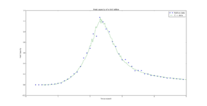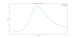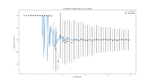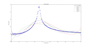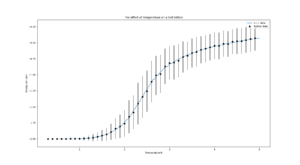 The plot of against gives a straight line, with intercept and gradient Fitting the C++ data gives which is only slightly off the theorectical reference value[1] of . This is a great result considering the sampling method used and the approximations made. The main source of error is the linear regression error, which is almost a 1% error. Other errors include fitting the peaks in each heat capacity plot, finding the max temperature and problems with the simulations themselves such as the system not reaching equilibrium or staying in the metastable state.
