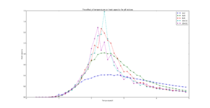 TASK: Write a Python script to make a plot showing the heat capacity versus temperature for each of your lattice sizes from the previous section. You may need to do some research to recall the connection between the variance of a variable, , the mean of its square , and its squared mean . You may find that the data around the peak is very noisy — this is normal, and is a result of being in the critical region. As before, use the plot controls to save your a PNG image of your plot and attach this to the report.