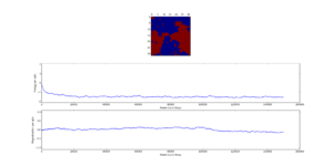 The code was modified to correct the average such that the first ncols x nrows x 200 steps were discarded whilst the system equilibrated, thus giving a more accurate average.
