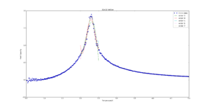 TASK: find the temperature at which the maximum in C occurs for each datafile that you were given. Make a text file containing two colums: the lattice side length (2,4,8, etc.), and the temperature at which C is a maximum. This is your estimate of for that side length. Make a plot that uses the scaling relation given above to determine . By doing a little research online, you should be able to find the theoretical exact Curie temperature for the infinite 2D Ising lattice. How does your value compare to this? Are you surprised by how good/bad the agreement is? Attach a PNG of this final graph to your report, and discuss briefly what you think the major sources of error are in your estimate.