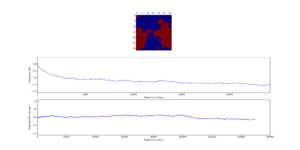 TASK: complete the functions energy() and magnetisation(), which should return the energy of the lattice and the total magnetisation, respectively. In the energy() function you may assume that at all times (in fact, we are working in reduced units in which , but there will be more information about this in later sections). Do not worry about the efficiency of the code at the moment — we will address the speed in a later part of the experiment.