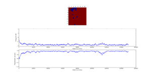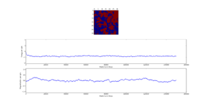 TASK: Implement a single cycle of the above algorithm in the montecarlocycle(T) function. This function should return the energy of your lattice and the magnetisation at the end of the cycle. You may assume that the energy returned by your energy() function is in units of ! Complete the statistics() function. This should return the following quantities whenever it is called: , and the number of Monte Carlo steps that have elapsed.