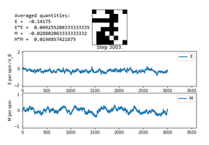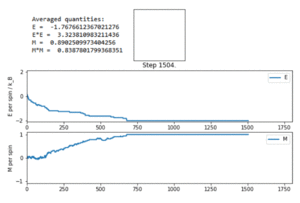 def __init__(self, n_rows, n_cols): self.n_rows = n_rows self.n_cols = n_cols self.lattice = np.random.choice([-1,1], size=(n_rows, n_cols)) self.E=0 self.E2=0 self.M=0 self.M2=0 self.n_cycles=0