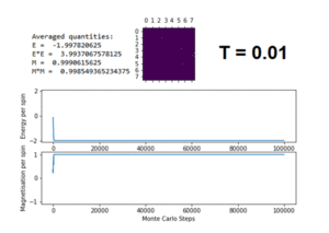 8x8 Lattice at a temperature of 0.01 for 10000 Monte Carlo Steps.