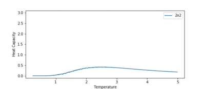 - The problems with noise in the heat capacity comes from not running the simulation for long enough to obtain a good average. The program written in C++ was able to be run with much longer runtimes, reducing the number of fluctuations close to the peak in the heat capacity.