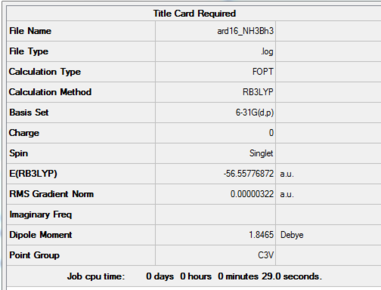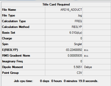 Item Value Threshold Converged? Maximum Force 0.000006 0.000450 YES RMS Force 0.000004 0.000300 YES Maximum Displacement 0.000016 0.001800 YES RMS Displacement 0.000011 0.001200 YES