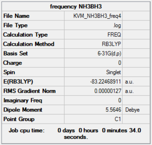 The frequency analysis also computes the vibrations of the molecule. The frequencies, intensities and nature of the 6 vibrations of BH3 are listed below.