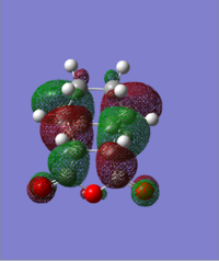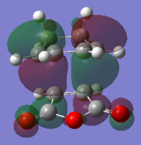 From the obtained MO diagram, we can conclude that the HOMO of the transition structure is resulted from the interaction between the LUMO of the maleic anhydride and the HOMO of the 1, 3-cyclohexadiene. This is due to the lowering of energy for the LUMO of maleic anhydride in the presence of electron-withdrawing carbonyl groups.