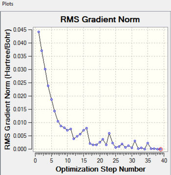 From the data, the force and displacement are shown to be converged, which confirms the stationary point with energy minima. Also the RMS gradient is very small, which confirms that the optimization calculation is successful.