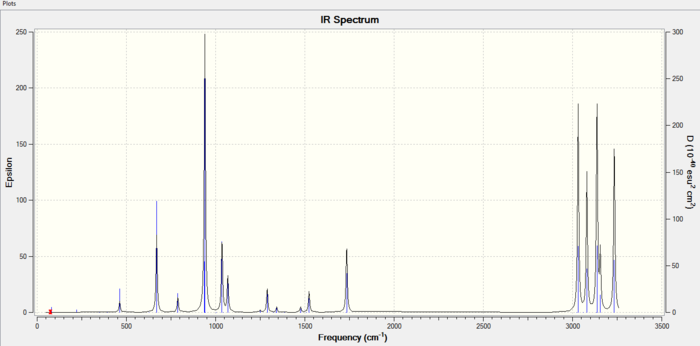 Then a frequency analysis is carried out using the optimisation file. By ensuring there are no imaginary frequencies, the structure is confirmed to be optimised to a minimum.