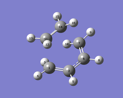 Three conformers of 1,5-hexadiene were obtained in this section and the energy values of each conformer in the summary was used to determine the corresponding structure type by comparing with the data in Appendix 1 of the script.