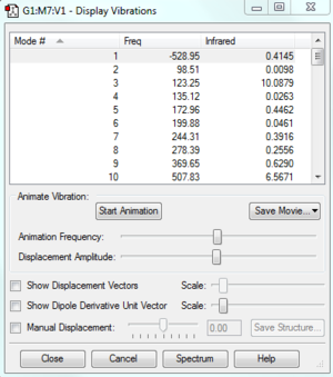 Vibrational frequencies give information about the point properties in potential energy surface which can shows whether the point is a saddle, maximum or minimum. Frequencies represent the curvature of the potential energy. The reactants and products are always local minimum point in potential energy surface, when changing the geometry from them, the energy will always go up which gives positive curvature. However, at transition state, it is a stationary point which means it is a maximum point on the minimum energy pathway but a minimum in potential energy respond to its geometry so it can have negative frequency. As shown on Figure3, One negative imaginary frequency was shown which means a saddle point was detected and geometry of transition state was obtained.