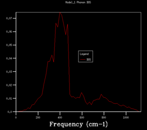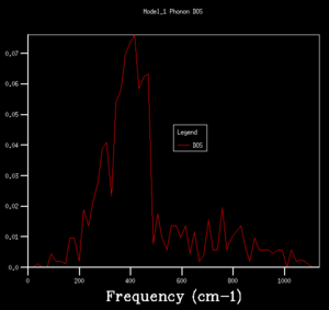 Phonon density of states is the number of states per unit frequency. It is a normalised plot show-ing the fraction of all sampled phonon states that at each frequency value at specific space points determined by size of shrinking factor.
