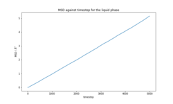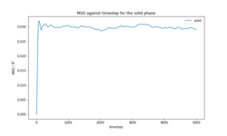 The total MSD in each system phase was calculated by simulating the system with the same parameters as per "Calculation of the radial pair distribution function, g(r)" to simulate the 3 phases.