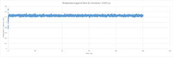 The optimal timestep was determined by performing simulations on a simple cubic lattice of dimensions 10X10X10 lattices. Total energy, pressure and temperature were the measurable thermodynamic properties tested at each timestep (Table 1).