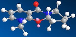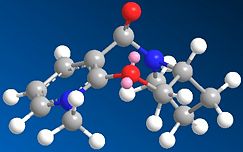 There is very little flexibility in the seven-membered ring limiting to only two conformation minima of 5, which focus on the geometry of the amide carbonyl group and its orienation with respect to the pyridinium ring; one in which the amide carbonyl group is above the plane of the pyridine ring by 129.6°(5.1; 303.87kJ/mol), and another in which the carbonyl group and the pyridinium ring are in the same plane (5.2; 180.38kJ/mol). However, optimisation of 5 by the MM2 method shows that it not possible to have a conformer with the amide carbonyl group positioned below the pyridinium ring.