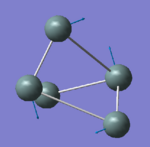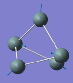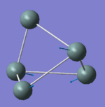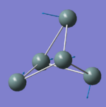 The fewer vibrational modes of Sn5 trigonal bipyramidal structure indicates that it is geometrically more symmetrical than that of tetragonal pyramidal structure. With higher symmetry in a molecule, it is expected to be more stable and this supports with the optimisation data that trigonal bipyramidal structure is the most stable Sn5 structure at ground state.
