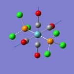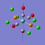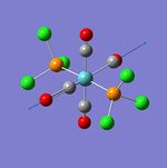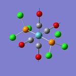 The simulation of cis- and trans- Mo complexes suggest that the trans isomer is the more stable isomer by an energy of about ~88kJ mol-1 and this is supported by the literature[5]. One possible reason for cis isomer to be less stable is the steric clashes arise from cis- PCl3 group which destabilise the complex.